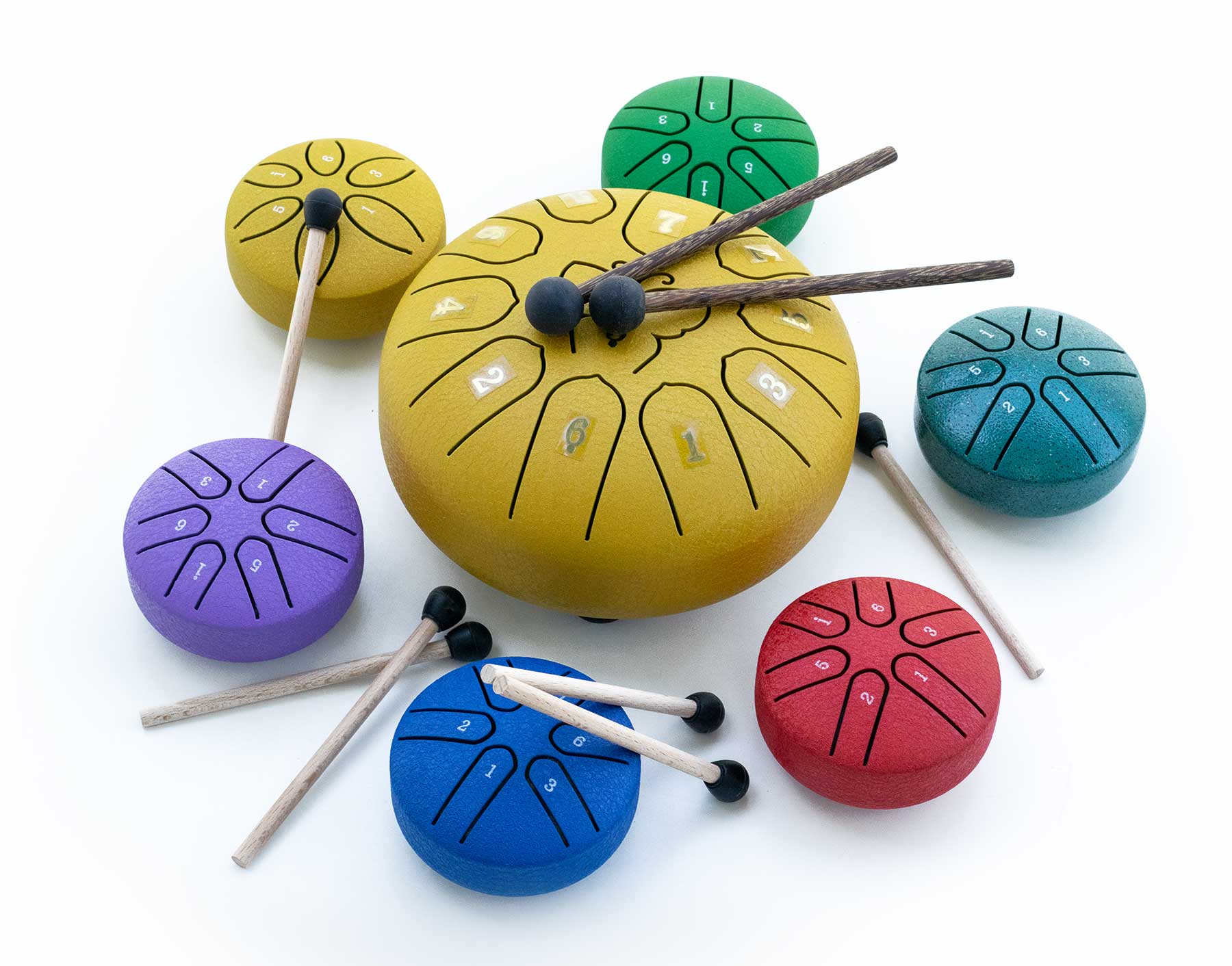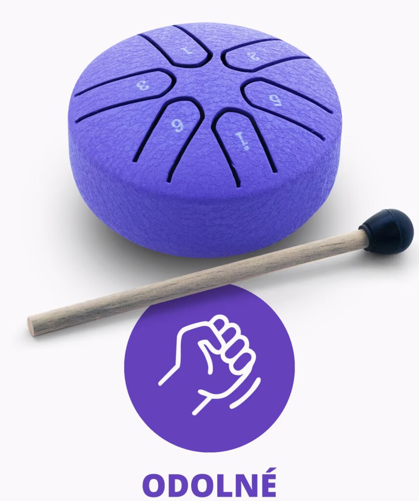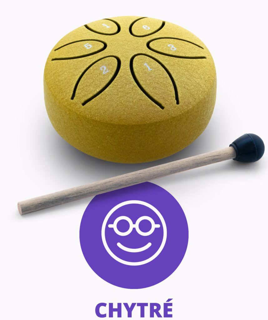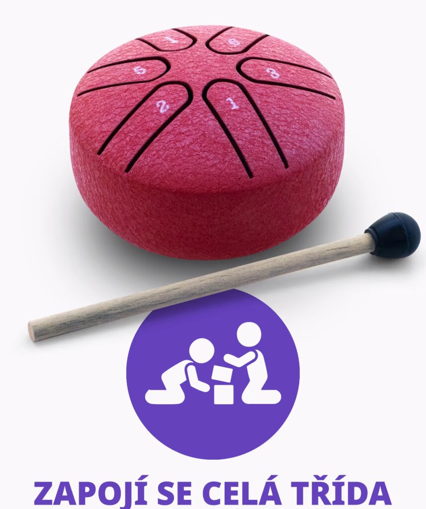 Pro zapojení děti jsou určeny malé, barevné, doprovodné bubínky s paličkami. Z praxe víme, že děti hru na bubínky milují a krásně se při ní rozvíjejí.