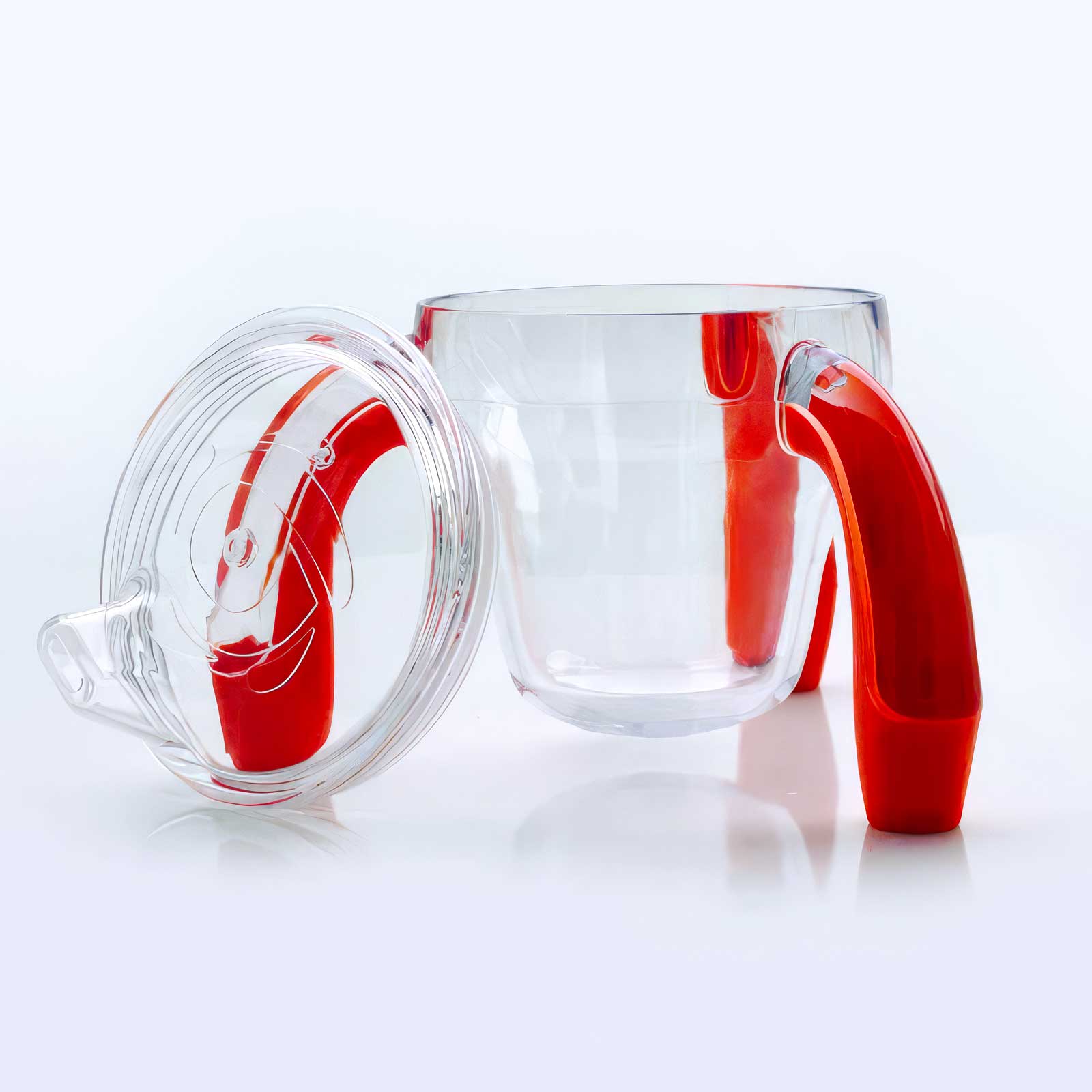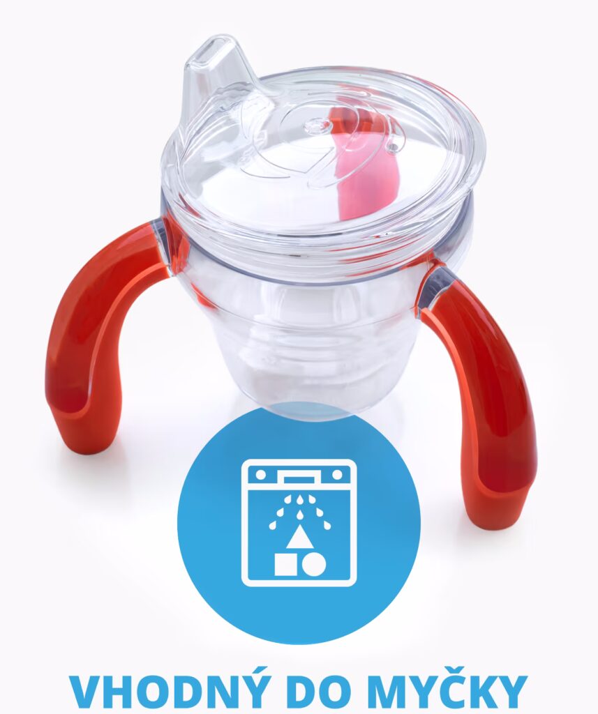 Hrníček je lehoučký a stohovatelný. Díky čirému materiálu je krásně vidět, kolik v něm zbývá tekutiny. Je velice odolný a díky třem úchopům, které slouží zároveň i jako nožky, také velice stabilní, takže je mnohem těžší jej převrhnout. Děti mají našeho „Šikulu“ ve veliké oblibě a rády z něj pijí.