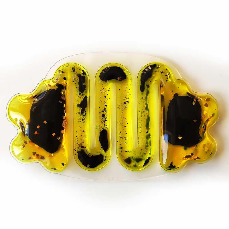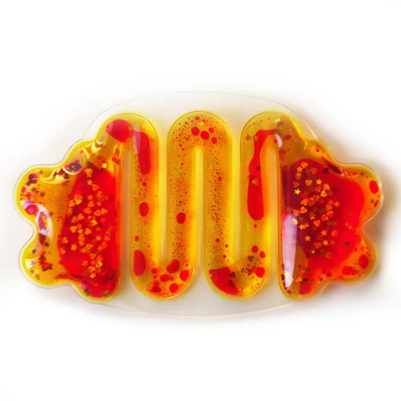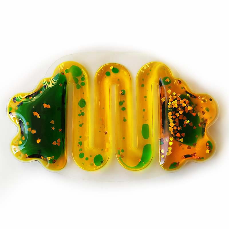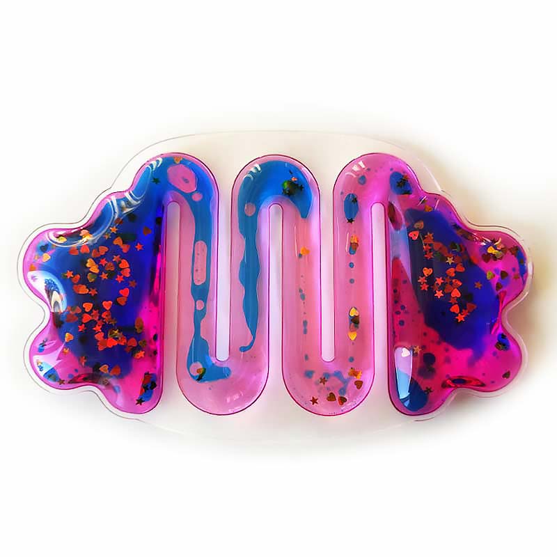 Nová revoluční didaktická pomůcka, která chytí děti i dospělé. (Nás chytla pořádně :-)) Labyrint vypadá nenápadně, ale jakmile ho děti vezmou do ruky, už ho hned tak neodloží. Střídavým mačkáním pravé a levé strany se uvnitř labyrintu začne přelévat barevná tekutina s drobnými, zářivým flitry. Mačkání působí velmi příjemně, podporuje soustředění a uklidňuje. Proto tuto didaktickou pomůcku milují také děti s poruchami autistického spektra. Trénuje také koordinaci pohybů a posiluje ruce.