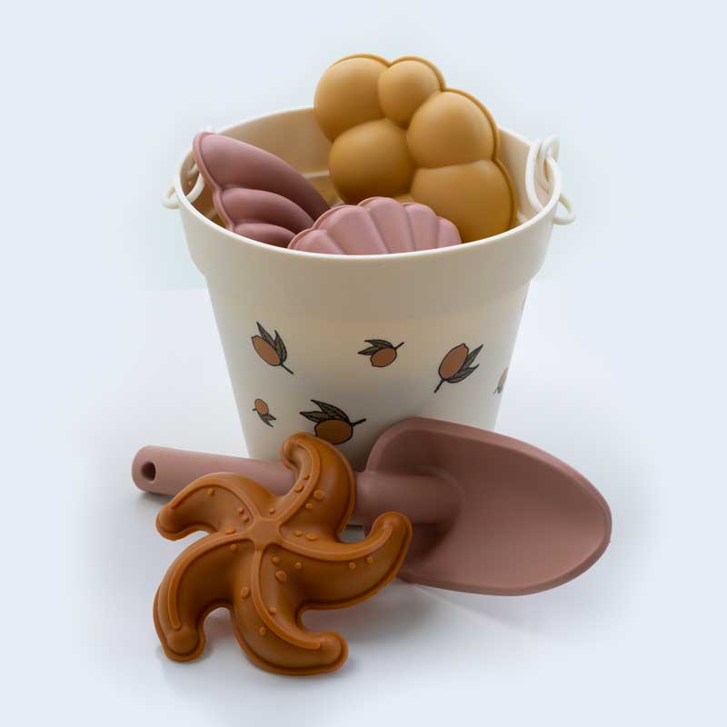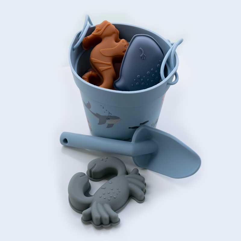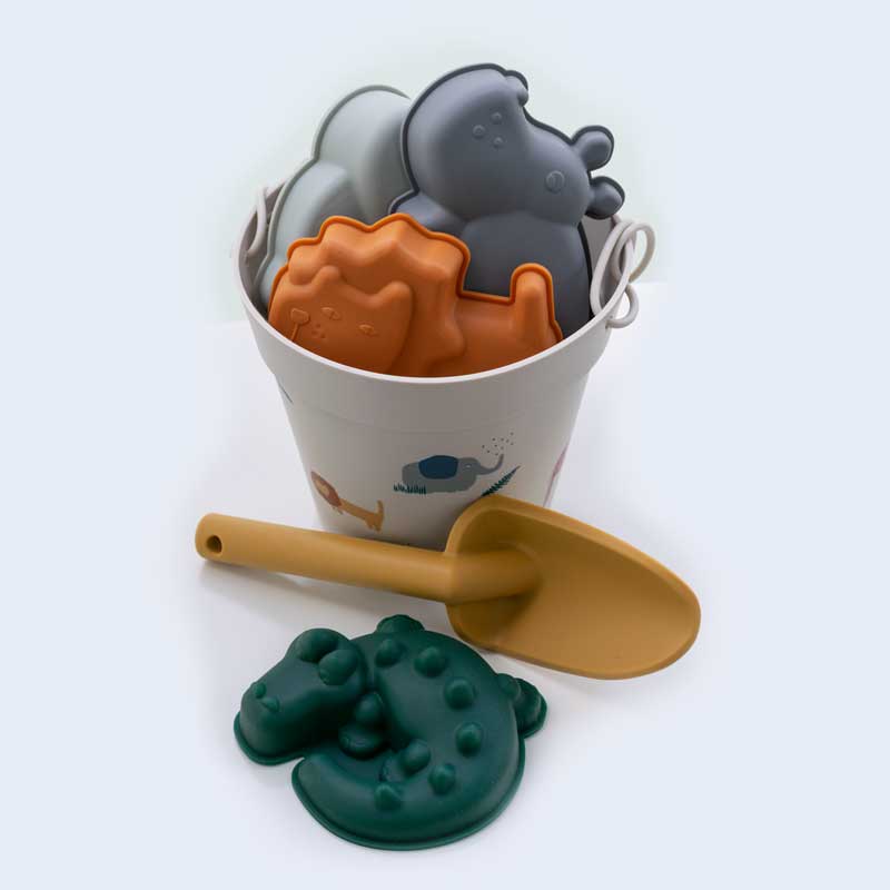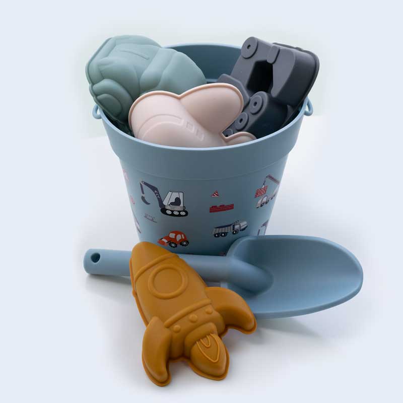 Měkký, silikonový kyblíček s bábovkami a lopatkou