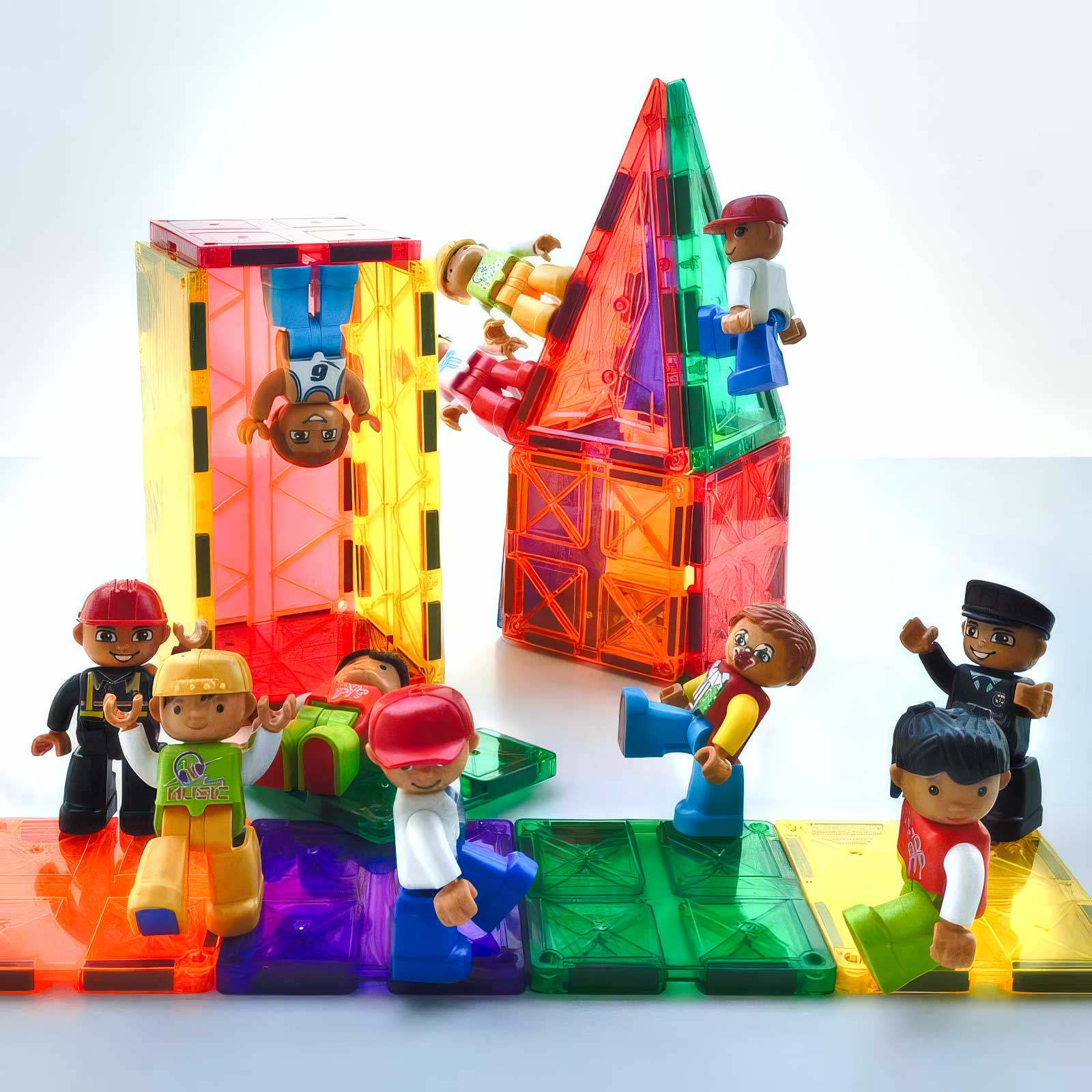 Hraví panáčci s magnety v nožkách, skvěle doplní a oživí jakoukoli stavebnici s magnety. Jak nám často říkají paní učitelky, nejlépe je panáčkům také na radiátorech, nohách stolů nebo na zárubních dveří. Panáčci představují zástupce různých povolání, jsou hezky barevní a mají pohyblivé nohy i ruce. U panáčků nelze oddělovat jednotlivé části.