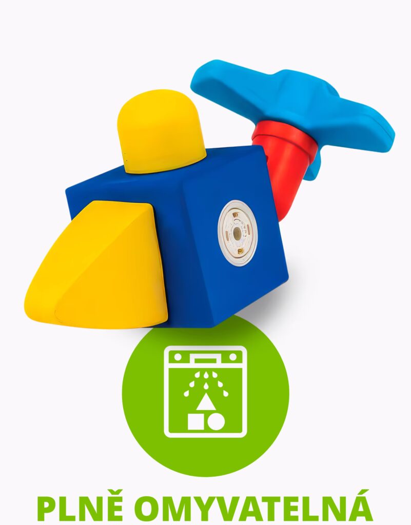Stavebnice je vyrobena z praktického, prémiového materiálu. Je voděodolná a plně omyvatelná i v myčce na nádobí.