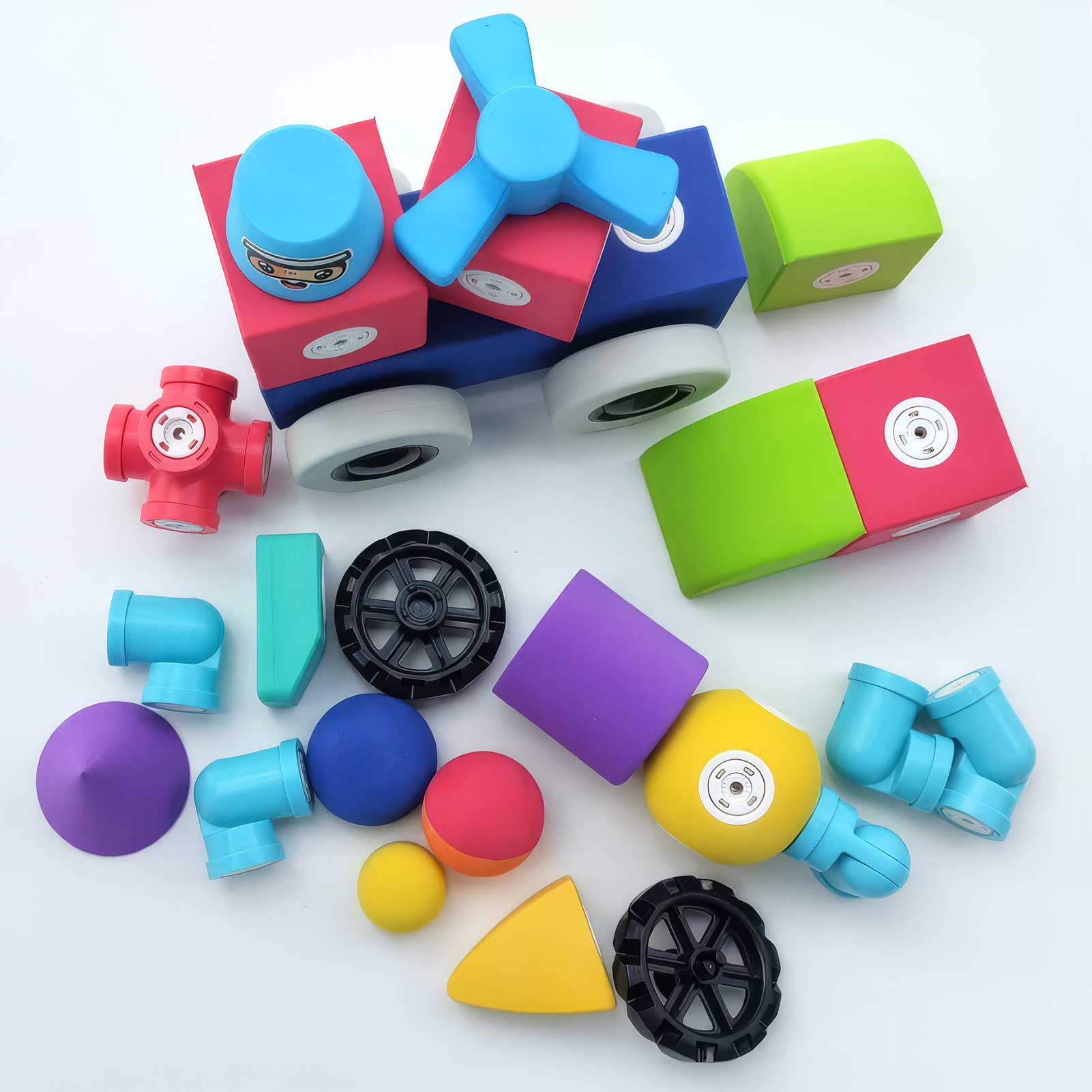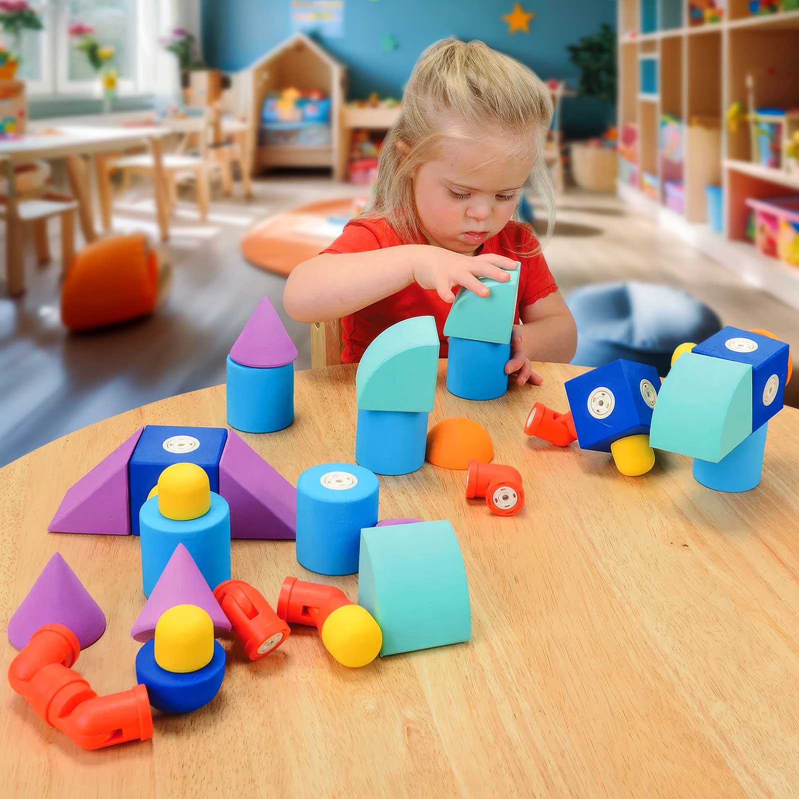 Tato nová sada posune Vaši oblíbenou, pěnovou stavebnici s magnety do úplně jiné dimenze hraní. Skvěle funguje jak samostatně, tak v kombinaci se základními díly pěnové stavebnice. Dětem nabídne spoustu nových možností při skládání postaviček „transformerů“, aut, dopravních prostředků, zajímavějších staveb a fantastických objektů.